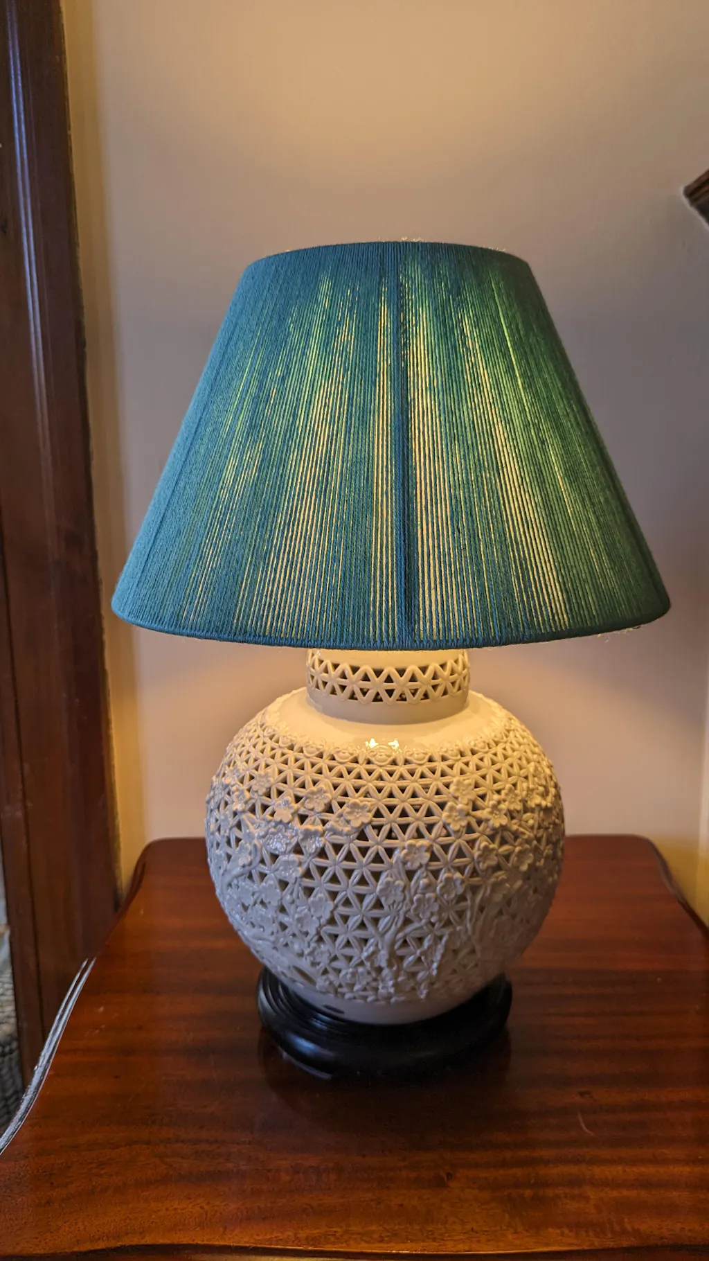 The jute string was dyed to match the Sherwin Williams Aviary Blue SW6778 Color chip. These shades have a lining to diffuse the light.