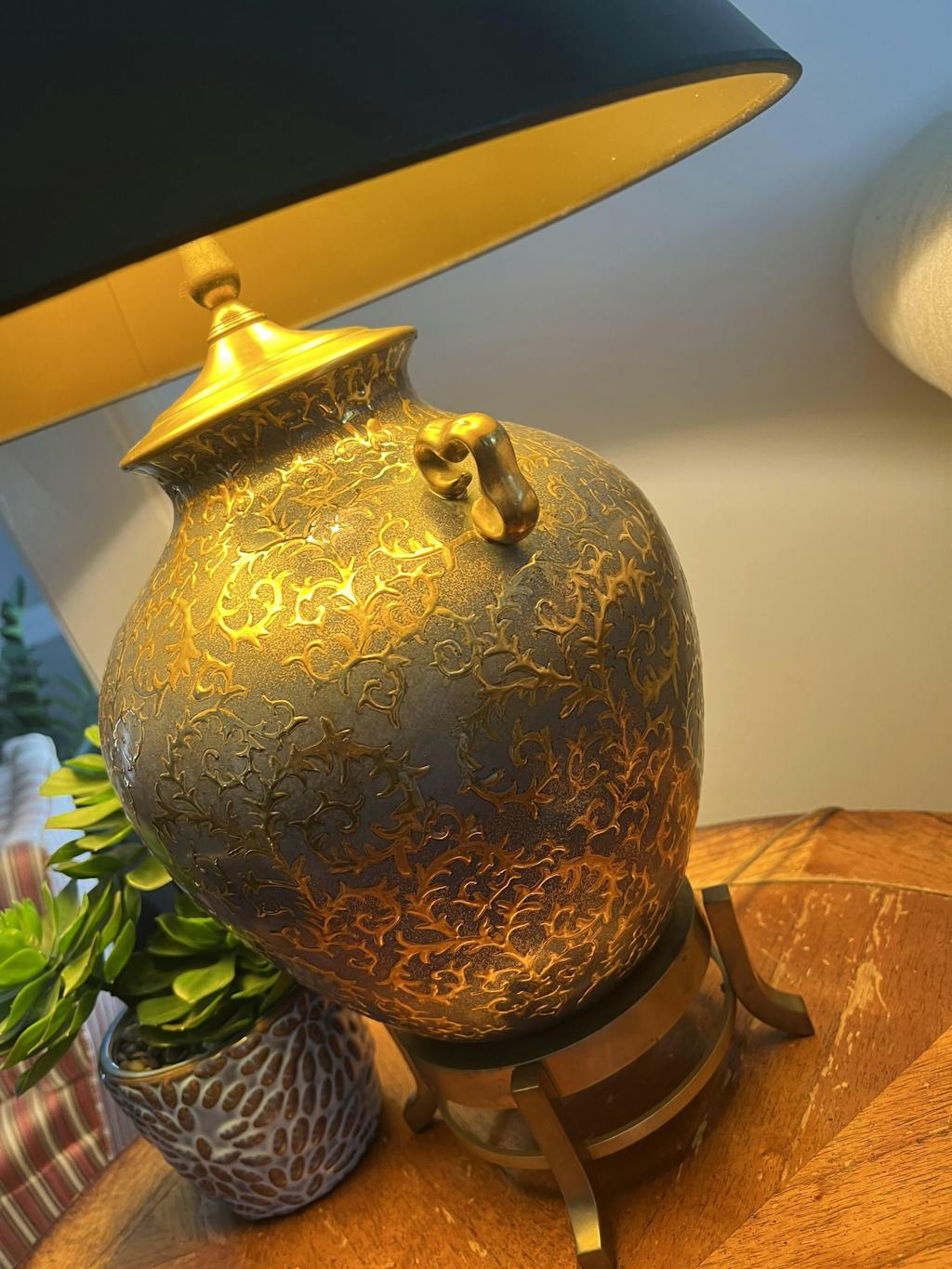 BLACK PAPER LAMPSHADE WITH GOLD LINING